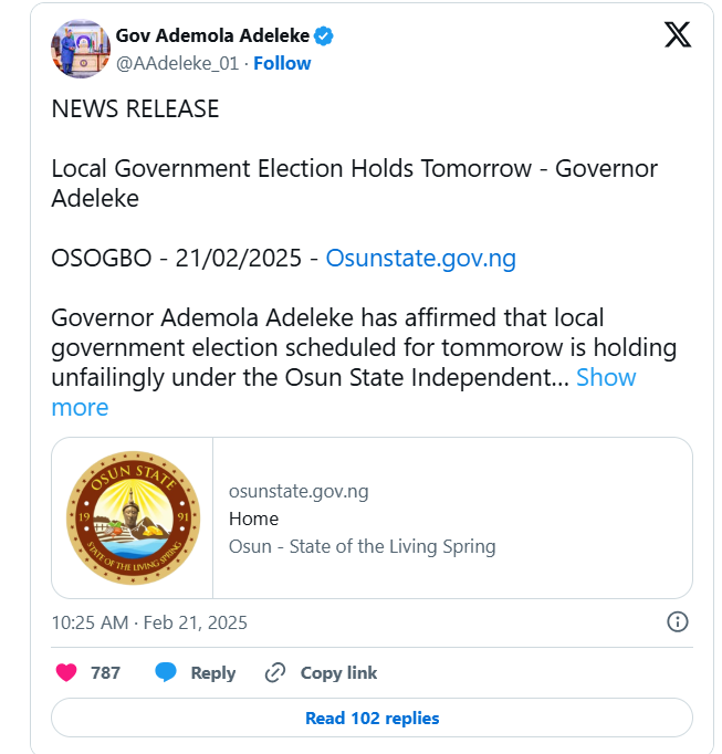 The Osun State Governor, Ademola Adeleke, has insisted that the local government elections scheduled for Saturday will hold.